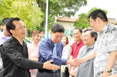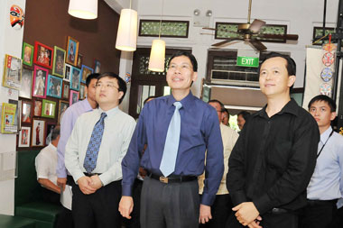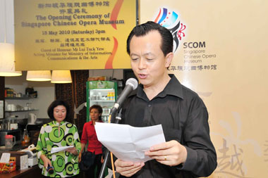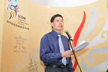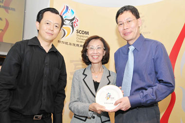 左:新加坡华族戏曲博物馆馆长卞汇滨先生 中:主宾:新闻、通讯与艺术部部长吕德耀先生;右:南洋艺术学院院长朱添寿先生